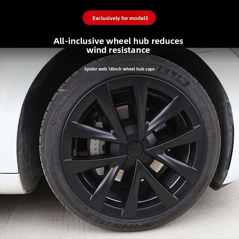 For Tesla Model 3 2017-2023 Hub Cover Imitation Model 3 Spider Web Hub Cover 18 Inch All-inclusive Edge Change